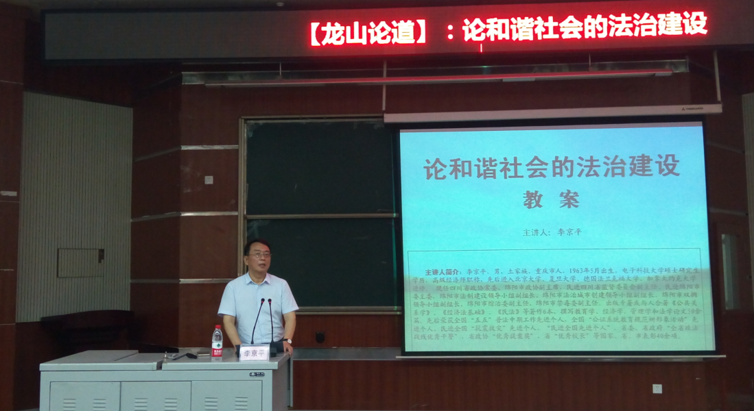 开学典礼结束后,李京平作了题为《论和谐社会的法治建设》讲座。讲座以法治起源、我国宪法形成与发展、根本和基本政治制度及相互关系为起点,详细介绍了社会成员与法律的关系、马克思主义法律观等三大重要理论、我国的法治理念、法律体系。重点讲述了我国立法情况、法律制度、当前社会矛盾及当前及未来一定时期内和谐社会的法治建设。授课中,他鼓励广大青年学生勤学慎思,增强法律意识、法律素养,运用法律思维、法律知识解决问题,助推和谐社会建设。