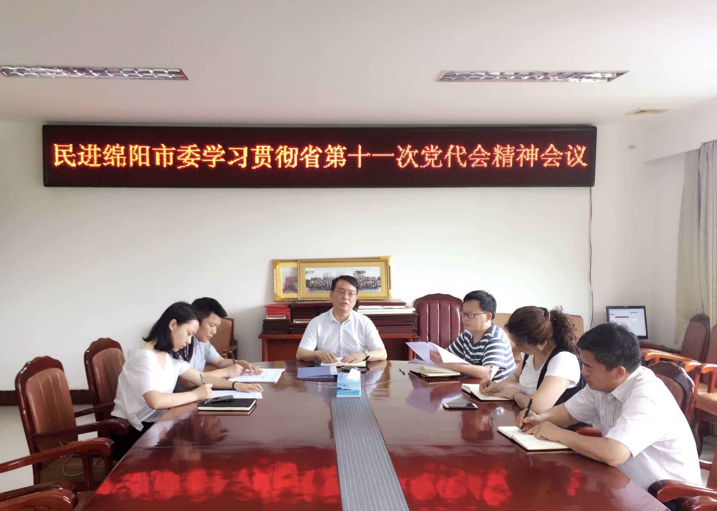6月1日,民进绵阳市委召开专题学习会,传达学习省第十一次党代会精神和省委十一届一次全会精神,绵阳市政协副主席、民进市委主委李京平主持会议。民进市委副主委蒋正强组织学习了王东明书记在大会开幕式、闭幕式上的讲话及会议相关决议。秘书长邓裕炜及全体机关干部参加会议。